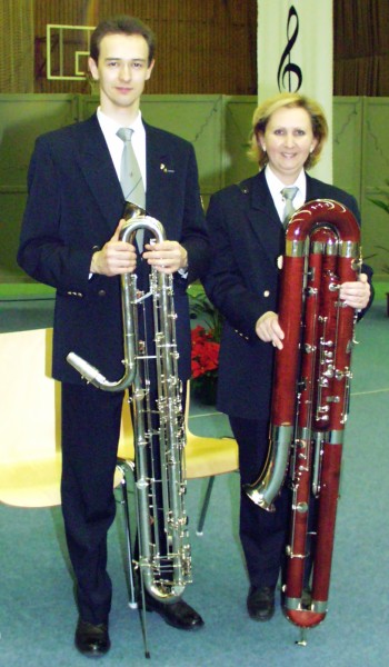 Op dene méi ale Fotoen sin ech mat enger Fagottistin ze gesin, déi och mol géren sech mam Kontrafagott ameséiert. Wat méi déif, wat besser. Op dene Fotoen ass dann och gudd ze gesin, dass d'Rouerlängt beim Fagott duebelt dou laang ass wéi bei der respektiver Klarinett, obschons béid Instrumenter genau d'selwech déif erof kommen. Dat läit dorun, dass d'Klarinett eng zylindresch Perce huet an sech wéi eng gedackte Päif behëllt, bei der d'Resonanzfrequenz d'Halschent vun dem ass, wat en oppe Päif mat der selwecher Längt hätt.